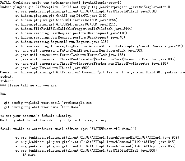 你可能注意到了,下面有一大串错误提示“Fail to connect to repository……”这个不用管它,因为Jenkins的主节点我们没有配置访问git服务器的密钥的原因。