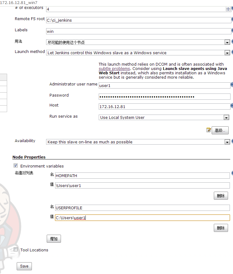 解决Win7下无法签出git代码方式一:修改Win7奴隶节点的设置添加两个环境变量“HOMEPATH”和“USERPROFILE”。