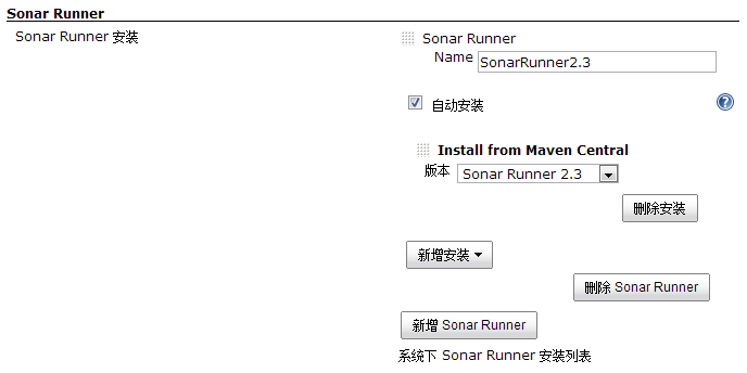 先找到“Sonar Runner”这里,点击“新增 Sonar Runner”按钮。