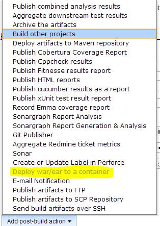 你可以在设置Job的“构建后操作”部分添加“Deploy war/ear to container”