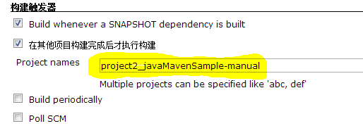 创建一个做集成测试的Job这一类的Job一般是依赖某个Job(比如手动部署测试环境)构建后启动构建。所以我们在配置Job属性时配置: