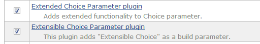 刚才说的另一个方法需要安装两个插件“Extended Choice Parameter plugin”和“Extensible Choice Parameter plugin”他们可以扩展参数化构建过程。