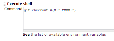 这里做的选择只会将选择内容保存到 GIT_COMMIT 环境变量里,要希望签出选定的代码,创建一个Pre-build setup。