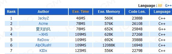 这样的效率排第七,,中规中矩吧,用的是前插链接表的spfa实现,当然我还开了输入外挂,此代码中木有加外挂