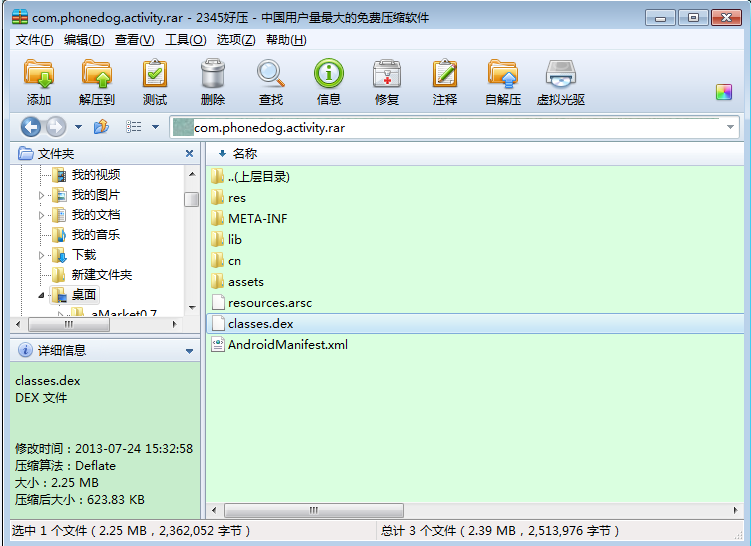 2.解压rar文件,得到其中的classes.dex文件