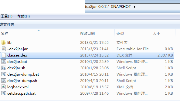 3.我们需要用到dex2jar 把dex文件转为jar文件。