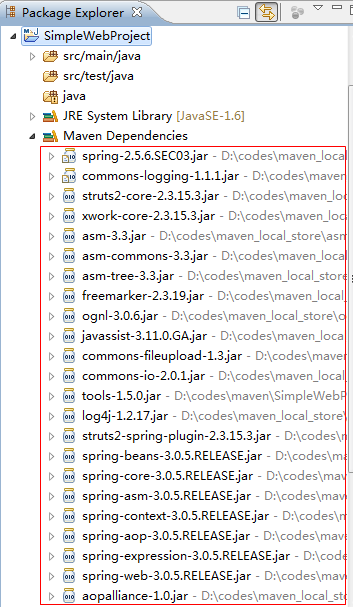 第三步:给工程添加Spring和Struts2对应jar包依赖