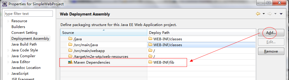 前面三个是默认的,不需要修改,我们需要新增最后一个lib,因为默认jar都在maven的本地仓库目录中,热部署的时候我们需要将jar全部拷贝到WEB-INF/lib下