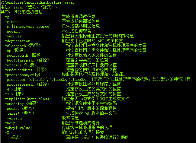 例:F:\explorer\AndroidByread>javac -encoding GB18030 -target 1.5 -bootclasspath F:\explorer\android-sdk-windows2.2\platforms\android-3\android.jar -d bin src\com\byread\reader\*.java gen\com\byread\reader\R.java