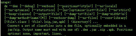 4使用android SDK提供的dx.bat命令行脚本生成classes.dex文件: