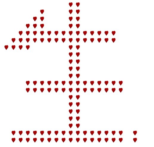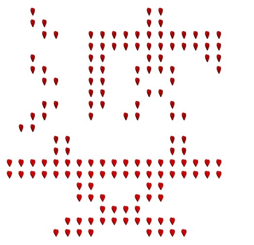 一直被老婆抱怨不懂浪漫,老婆的生日又来了,老婆指着闺蜜空间上贴的老公做的胡萝卜心形浪漫晚餐告诉我:必须送她一份用心的礼物。我绞尽脑汁想出这么一法子,还是得用我们码农的独特方式,经过一天多的努力,终于做完了,来给大家晒一下,一共三个特效 1,六个字单列从右侧飞入;2,六个字闪烁;3,六个字连续从右侧飞入(类似电子字幕的滚动特效)下面有附件,大家轻拍。基本原理,生成一个20行20列的table,400个小格子当屏幕,按照每个字的形状生成0,1数组,如果单元格需要显示,填入心形图片,否则填充透明图片,动画的时候一帧即为1个长度为400的数据,一共5*6+120*20+210*6帧*400个0和1,:
