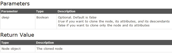 另一种创建新文档节点的方法是赋值已存在的节点。每个节点都有一个cloneNode()方法来返回该节点的一个全新副本。给方法传递