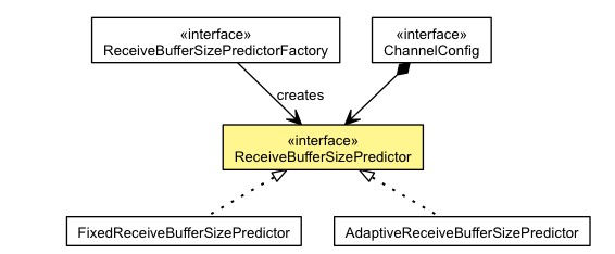 ReceiveBufferSizePredictor可以根据实际读取的字节大小数设置下次读写叫合适的缓冲区大小。类结构如下
