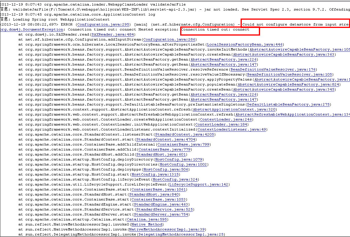 spring+hibernate初始化出错Could not configure datastore from input stream