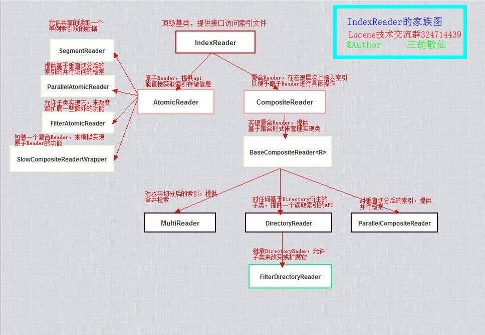 好了,开篇又扯淡了几句,下面我们开始进入正题,在这之前,我们先来看下IndexReader家族的家谱图。